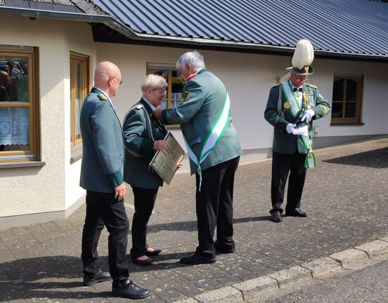 Marga Kinner, die bereits seit 7 Jahren Brudermeisterin in Kelberg ist, erhielt die Auszeichnung für ihr jahrzehntelanges Engagement im Sinne der Schützenbruderschaften.